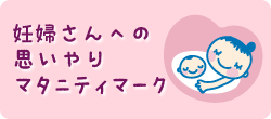 マタニティマークは、妊婦さんが交通機関等を利用する際に身につけ、周囲に妊婦であることを示しやすくするものです。また、交通機関、職場、飲食店等が、呼びかけ文を添えてポスターなどとして掲示し、妊産婦さんにやさしい環境づくりを推進するものです。